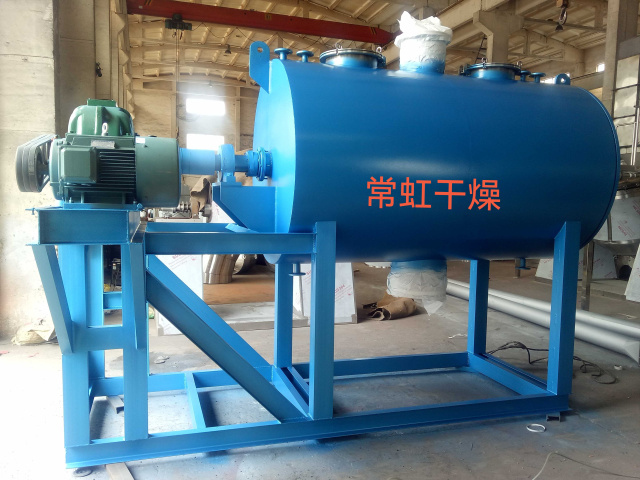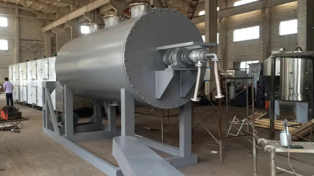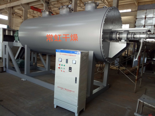 耙式真空干燥機比較適用于干燥熱敏性物料,在高溫下易氧化的物料、或干燥時易板結的物料,以及干燥中排出的蒸汽須回收的物料。干燥完畢后物料為粉末狀,所以對于成品為粉末狀的物料較為適用,干燥完畢后可直接包裝,不用粉碎。